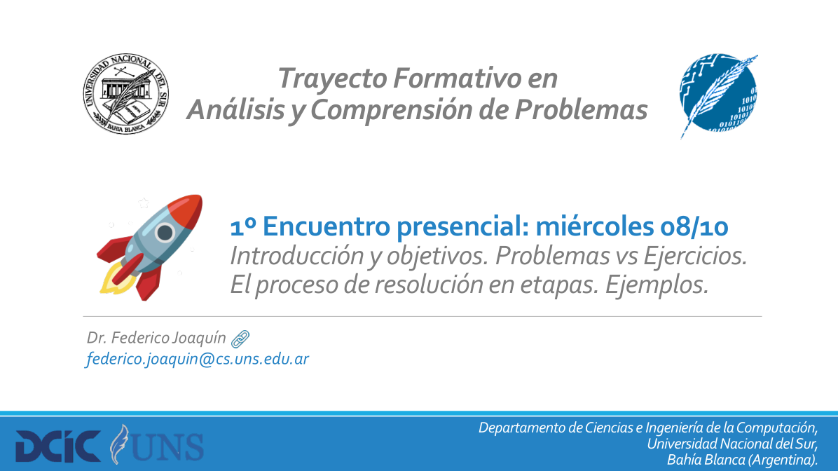 El curso de Análisis y Comprensión de Problemas aborda de manera integral los distintos aspectos involucrados en el proceso de resolución de un problema, desde la comprensión del enunciado, hasta la construcción de diversas representaciones alternativas tendientes a alcanzar la solución. La intención del curso no es enseñar nuevos conceptos, sino retomar los contenidos curriculares desarrollados en el nivel medio y replantearlos en el contexto de situaciones motivadoras y significativas. Un problema es un desafío intelectual y esta propuesta apunta a desarrollar una actitud pro-activa y creativa frente a él.